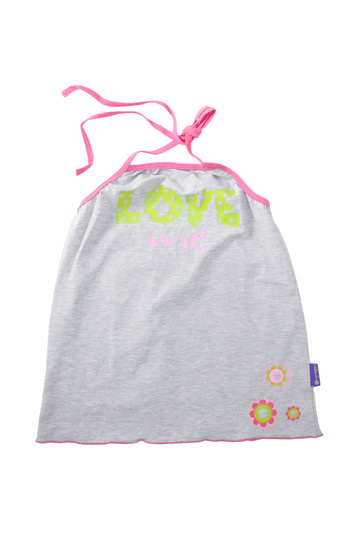 Dizajn: Veseo i razigran dizajn sa cvetovima i natpisom "LOVE Me" unosi radost u svaki dan. Tanke bretele koje se vezuju na ramenima daju joj lagan i letnji izgled.