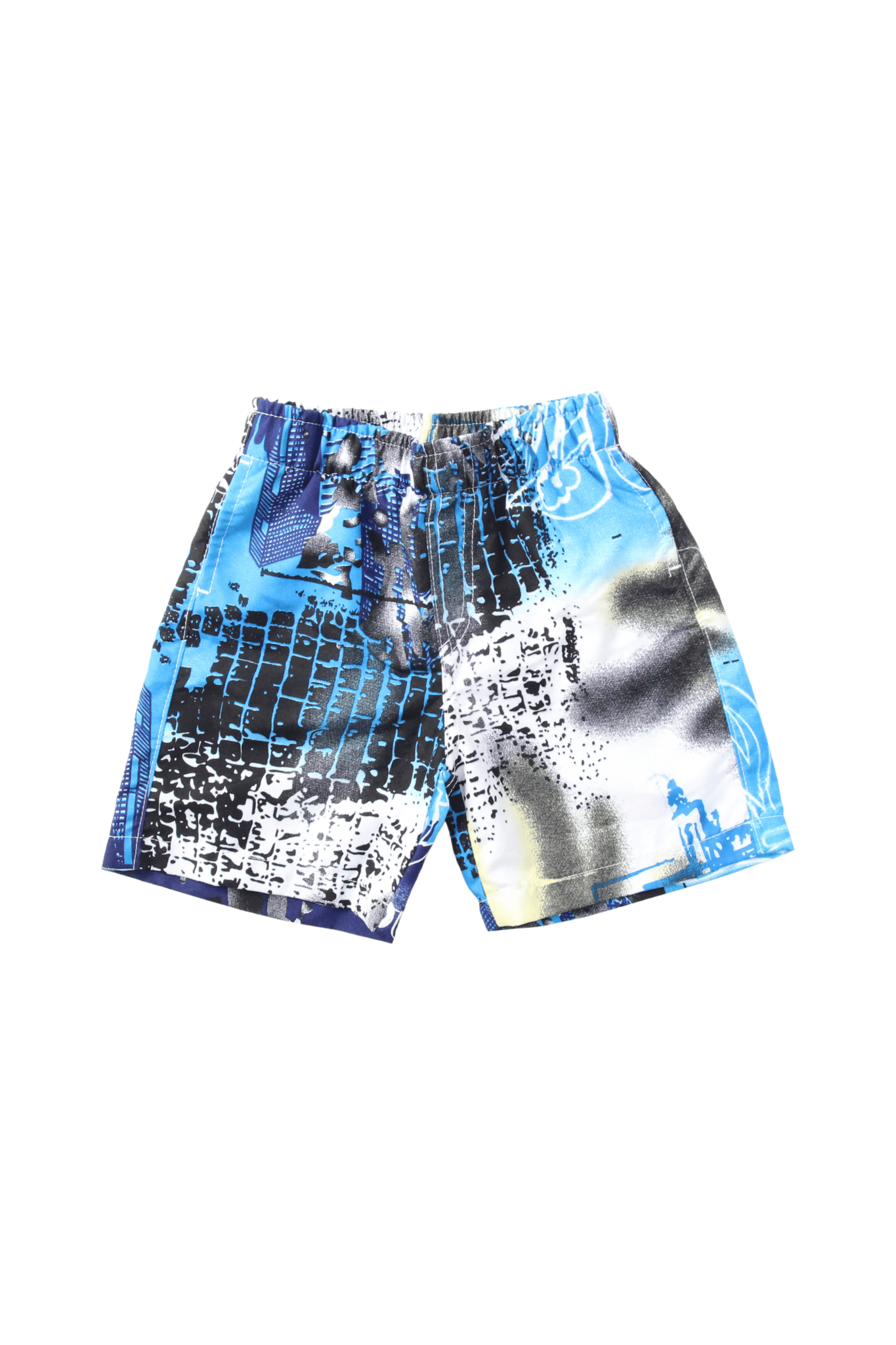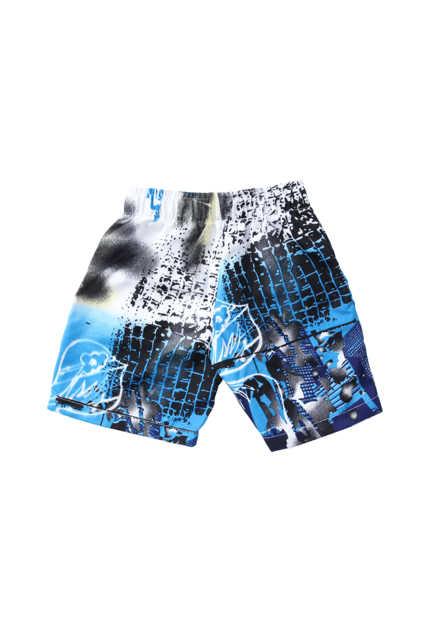 Dizajn: Šorts u plavim nijansama sa urbanim šarenim motivima, daje mu moderan i sportski izgled. Elastični pojas osigurava udobnost i lako pristajanje.