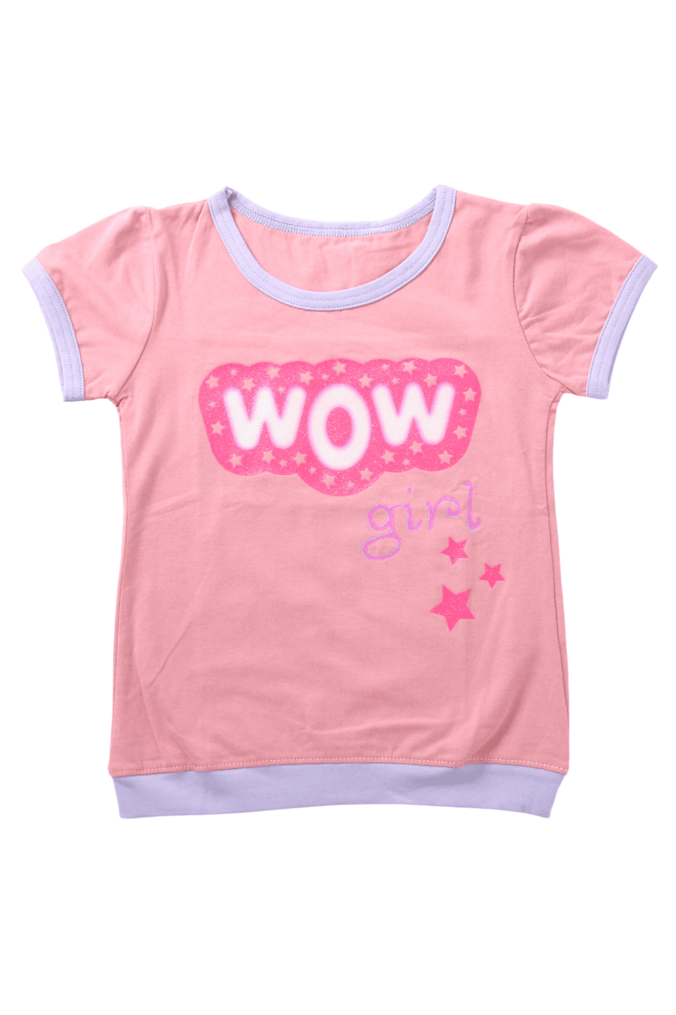 Dizajn: Kombinacija roze i lila boje, sa natpisom "WOW girl" i zvezdicama, daje ovoj majici moderan i veseo izgled. Kontrastni lila porubi na rukavima i donjem delu dodatno naglašavaju jedinstven dizajn.